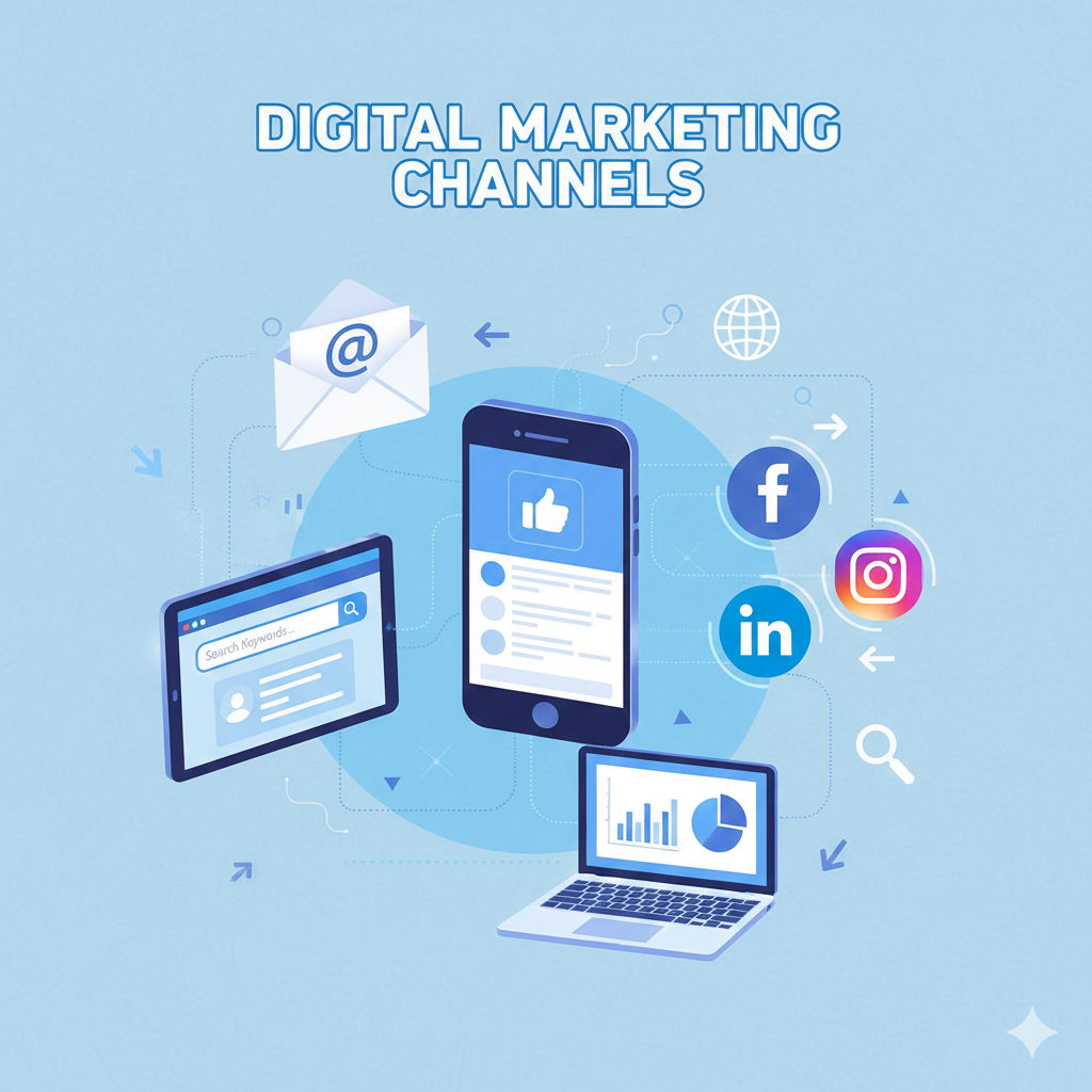 Simply put, Digital Marketing is the promotion of products or services using digital channels like the internet, mobile phones, and social media. Instead of traditional methods like newspaper ads or TV commercials, digital marketing uses platforms like Google, Facebook, Instagram, and Email to reach customers right where they spend most of their time—online!